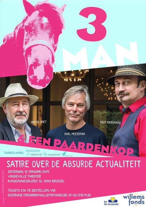 Net als in 2016 en 2017 geeft het Willemsfonds graag een impuls aan de groeiende traditie van oudejaarsconferences op de plek waar maatschappelijke veranderingen zich vaak als eerste manifesteren: Brussel. De voorbije jaren oogstten Karl Meersman en Jan De Smet al veel succes met hun jaaroverzichten in samenwerking met Ivan De Vadder. Dit jaar verenigen zij de krachten met Bert Kruismans en en een mystery guest, in een regie van Joris Gijssen. Wij zien ze op 12 januari 2018 om 20 uur aan het werk in één van de parels van Brussel: Het Vaudeville Theater in de Koninginnegalerij.